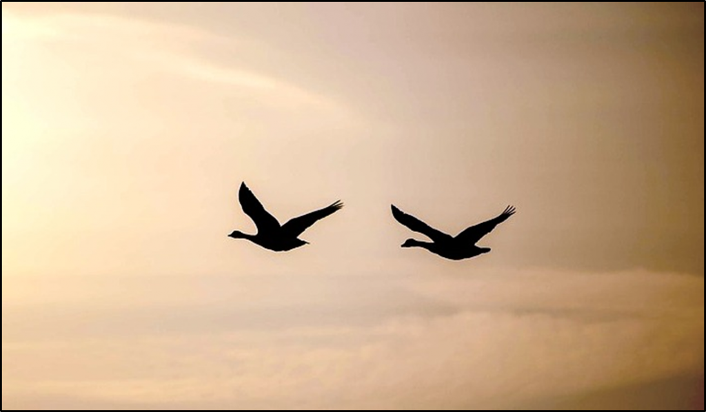 Pres. Gordon B. Hinckley: He was loved by many as the grandfather we wish we’d had. It gives many of us great comfort that someone without genius, several college degrees, or family connections could rise so far in the Kingdom of God. After listening to his funeral on TV, I pictured he and his departed wife Marjorie finally reunited and released from attendance at his funeral so they could fly to grander places in Heaven. He had publicly expressed his grief at losing her and how he missed her companionship and love. Coincidentally, I then drove west from Boise and Meridian on Chindon Blvd, heading to a real estate open house. I suddenly notice two lone Canada geese flying south, from left to right in my view. This seemed like a lovely message from the Lord confirming that they were indeed back together and flying off into a world of light and love, away from from this darkening world. Here’s what I found that is a beautiful representation of both that experience and what I imagined for them spiritually (Pixabay.com/image 4139298)