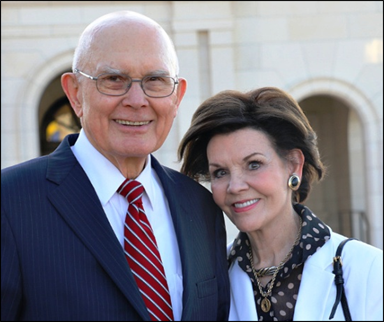Pres. Dallin H. Oaks: He is a former president of BYU Provo, a Utah Supreme Court Justice, an Apostle of God, and now in line to be the next president of the Church of Jesus Christ of Latter-day Saints. Here’s a lovely picture of him and his second wife, Kristen. Notice the arched doorways behind each of them, probably a temple somewhere in the world. See the scripture below that sprang to mind as I contemplated those “open doors” beckoning them to come in and rise to a higher calling, probably defending our church and religious freedom for allsoon to be coming under greater attack!